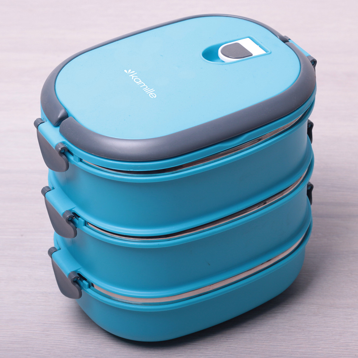 Ланч бокс для обідів блакитний потрійний із пластику та нержавіючої сталі 2700мл Kamille KM-2110