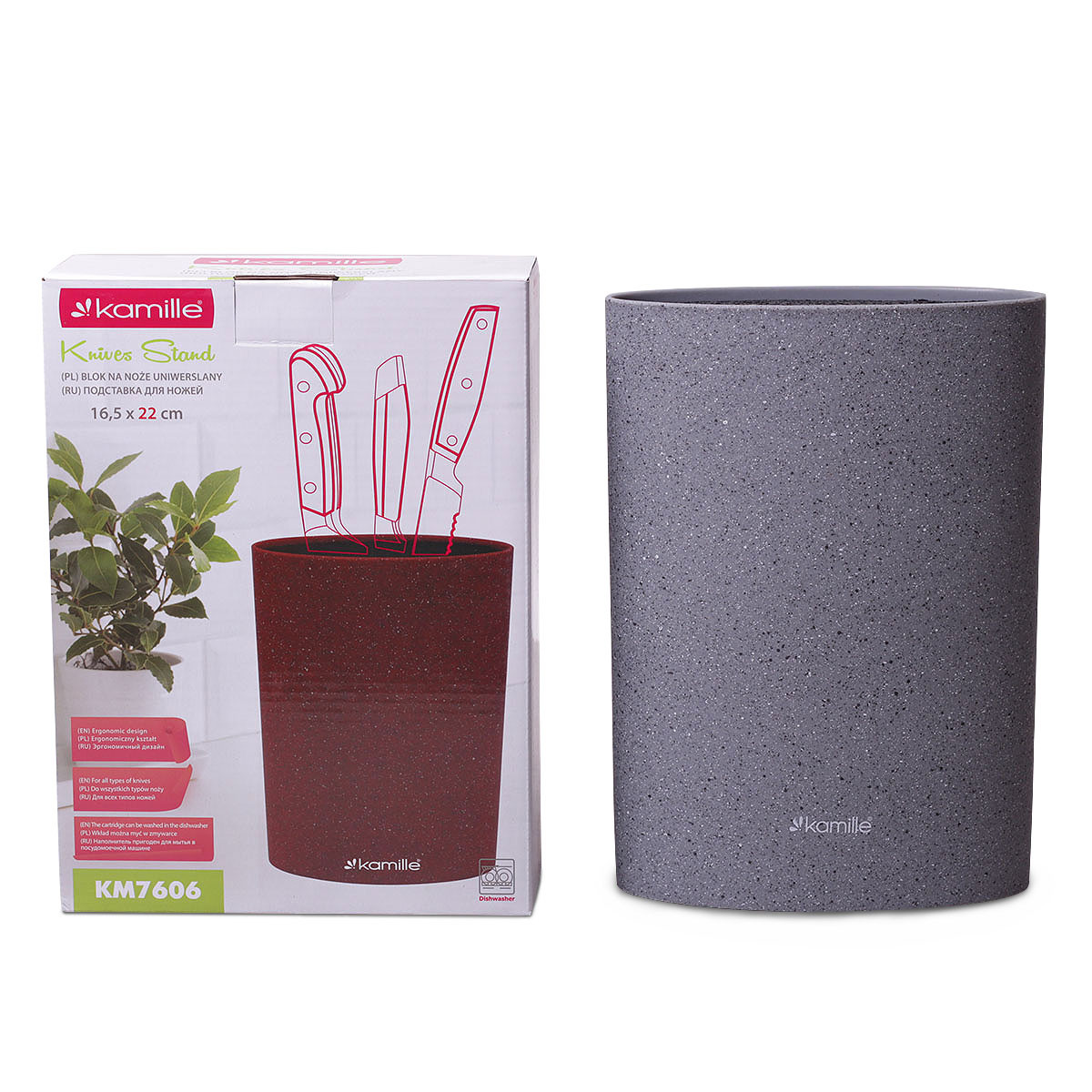 Підставка для ножів із пластику з наповнювачем Сірий Колода для ножів 22 см Kamille KM-7606